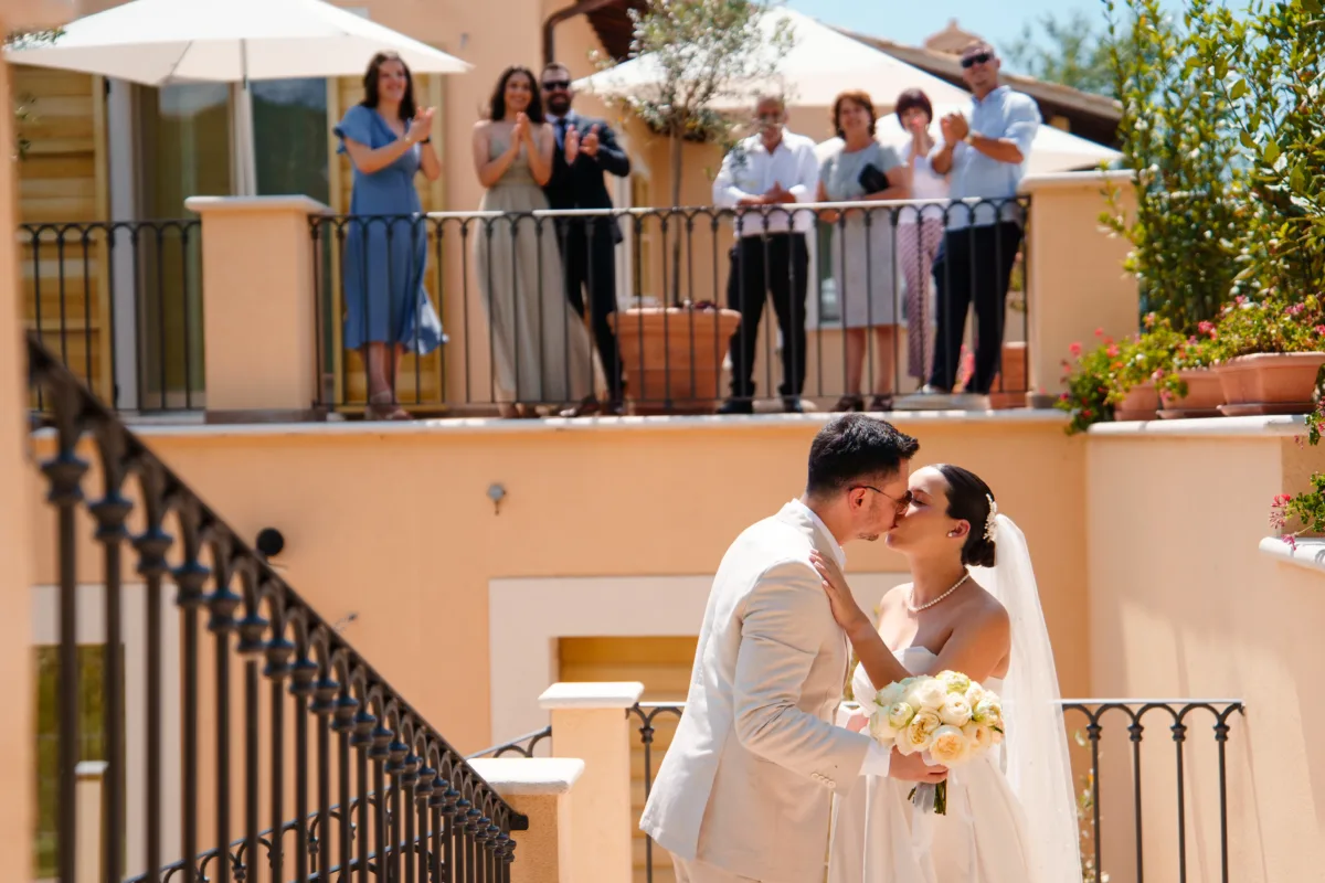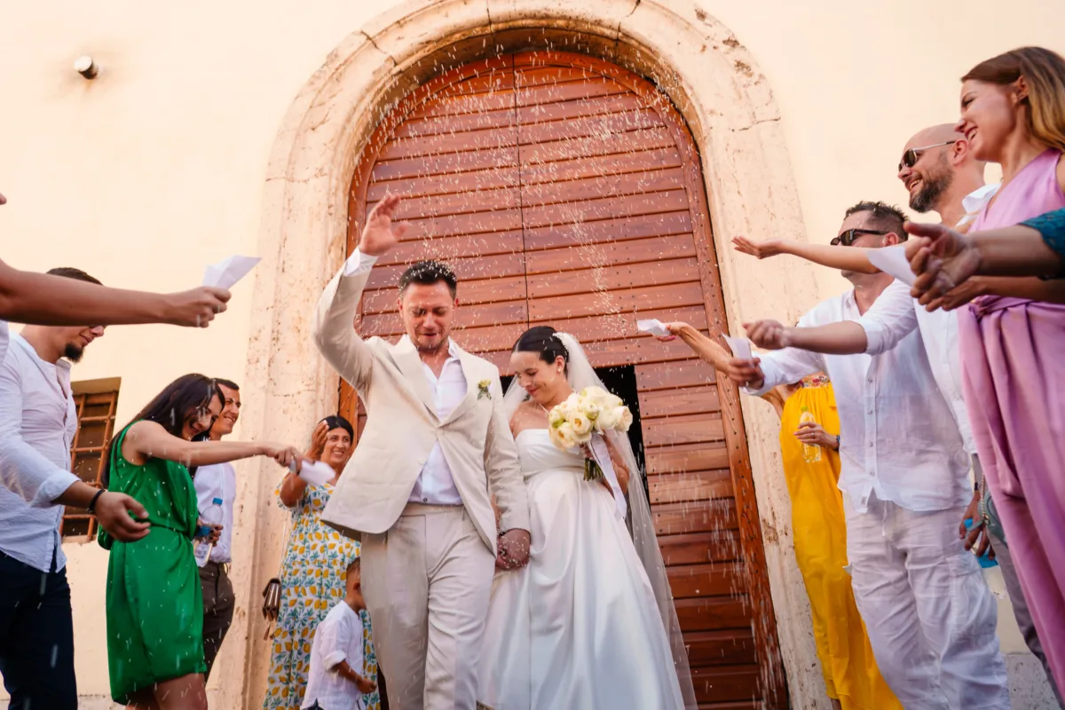 Familia si cei mai apropiati prieteni le-au fost alaturi intr-o zi speciala, transformata intr-o poveste unica sub cerul liber, printre dealuri blande si livezi de maslini.